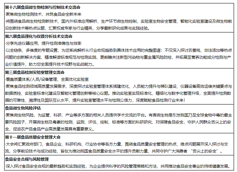 ·将环绕食物微生物检测新手艺、国表里尺度使用解析、出产环节微生物节制、尝试室生物平安办理、汇聚权势巨子专家取行业精英,分享最新研究取实践经验。